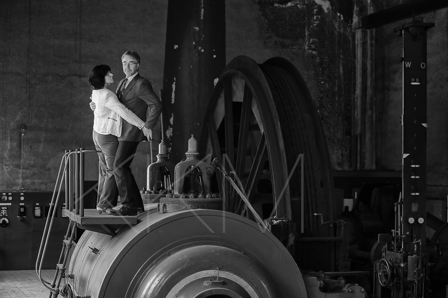 Alfons Buddner und Frau Karin in der Maschinenhalle der Zeche Fürst Leopold in Dorsten Wie andere Kinder auch, hatte Buddner viele Berufswünsche. Förster wollte der Vater zweier Töchter werden, dann Bäcker. Aber selbst sein regelmäßiges samstägliches Backen von Schokoladen-, Sand- und Rosinenkuchen änderte nichts daran, sich schlussendlich doch für eine Karriere auf dem Pütt zu entscheiden. Er machte als Bergarbeiter in dritter Generation seinen Hauerbrief und ging dann zur Bergfachschule. Mit 22 Jahren war er mit der Steigerausbildung fertig. Dass Fürst Leopold 2001 die Förderung einstellte, konnte auch er als stellvertretender Betriebsratsvor- sitzender nicht verhindern. Für flotten Rhythmus im Leben sorgt seit rund 30 Jahren das gemeinsame Tanzen mit seiner Frau, aber auch regelmäßiges Singen, Akkordeonspiel sowie politisches Engagement. (Foto & Text: Wolf R. Ussler)