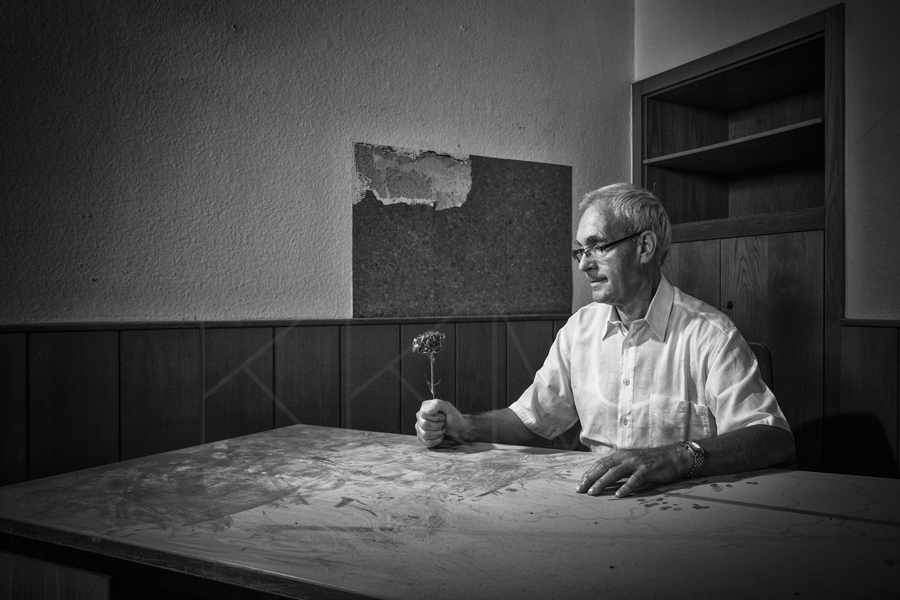Heinz-Jürgen Schüring Bäumer in seinem ehemaligen Büro auf Zeche Lohberg 1/2 in Dinslaken Eigentlich wollte Heinz-Jürgen Schüring evangelischer Pfarrer werden. Doch Not und Hunger in der Zeit nach dem Zweiten Weltkrieg zwangen den Kaufmannssohn aus Hünxe mit 14 Jahren zum Geldverdienen. Ein Jahr nach seiner Lehre begann Schüring auf der Zeche Lohberg in Dinslaken als Elektriker. Schon früh entwickelte er einen ausgeprägten Sinn für soziale Gerechtigkeit. Und so wurde die rote Nelke, das Symbol der Arbeiterbewegung, Begleiter seiner weiteren beruflichen Laufbahn. 1981 wurde Schüring auf Lohberg Mitglied des Betriebsrates, sechs Jahre später dessen Vorsitzender. Bis 1996 saß er im Aufsichtsrat der Ruhrkohle AG. Doch allem Engagement zum Trotz verlor der Familienvater und begeisterte Chorsänger den Kampf um den Erhalt der Zechen und Arbeitsplätze. (Foto & Text: Wolf R. Ussler)