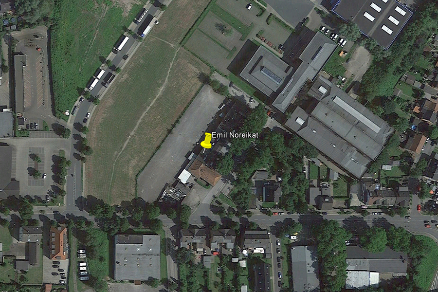 Quelle: Google-Earth Emil Noreikat in der ehemaligen Vulkanisierwerkstatt der Zeche Fritz in Altenessen Anfahrt über Heßlerstraße Essen 51°30'33.42"N ::: 7° 0'39.69"E |